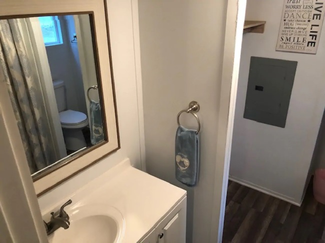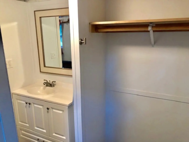 Blue Sky has a king-size master loft and a second loft right above the kitchen. The kitchen itself is made of stainless steels counters, apartment-sized fridge, oven, and lots of cabinets with additional hanging storage. Living room has a love seat and bathroom has a full-size shower. Large closet area has a washer-dryer combo.
