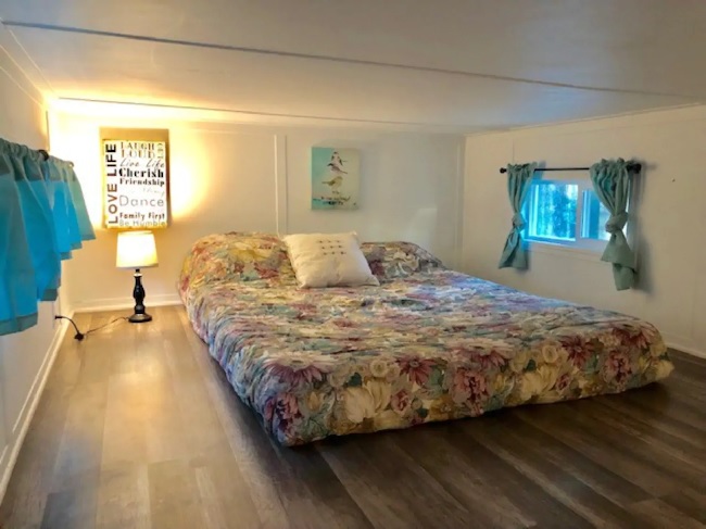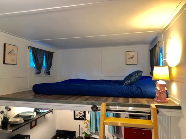A phrase that well-captures how we want our guests and residents to feel at Tiny House Block is to be “free as a bird.” Free to soar in any direction you desire, free to re-invent yourself, free to take risks no matter how unprecedented. To honor that spirit, Melissa and Jon came up with the “Blue Sky” themed-house, where inside you will enjoy all the flying-high decorations. This house has been a particular favorite for authors and songwriters to enjoy creative retreats. We believe you’ll see exactly why.