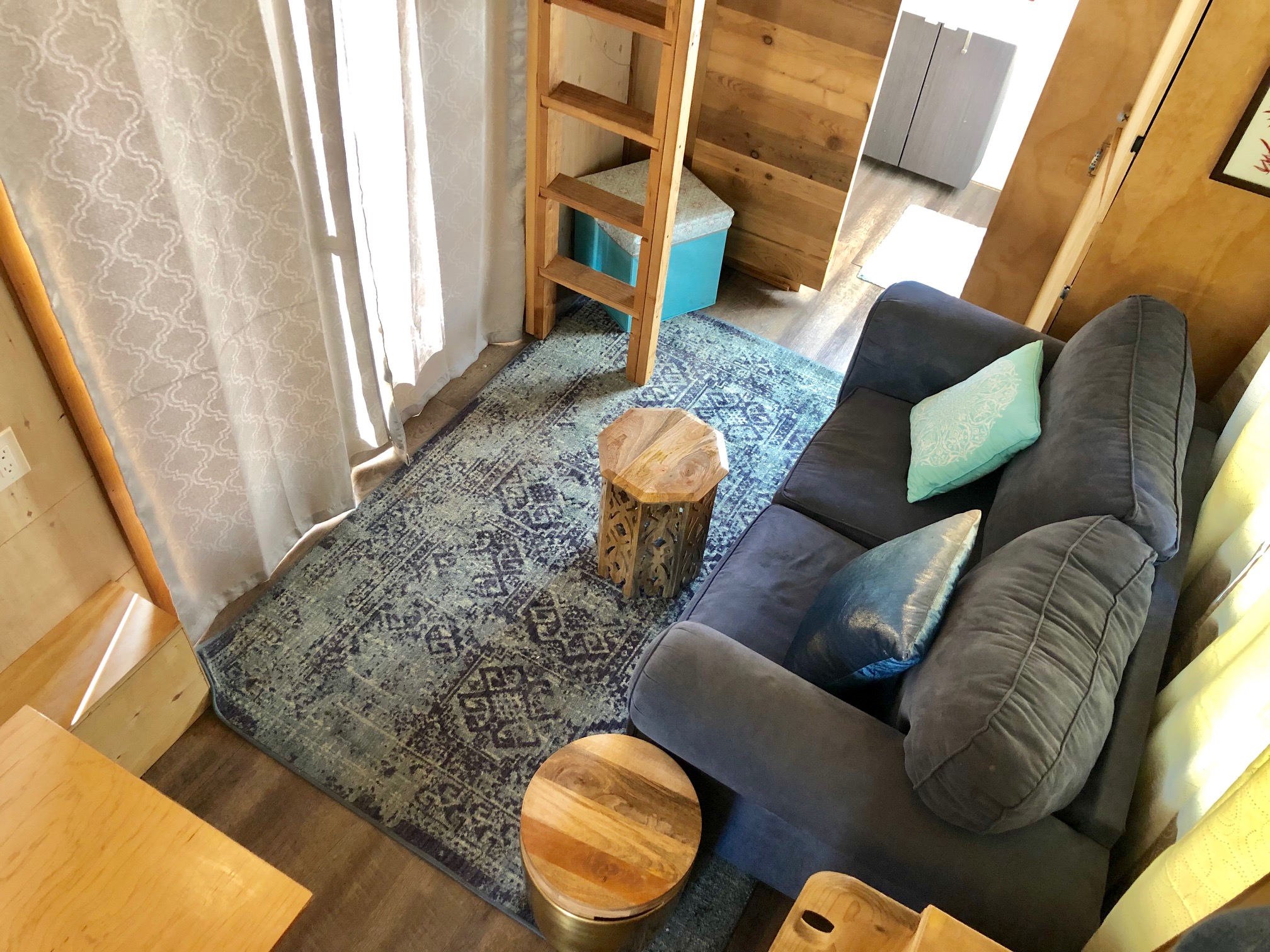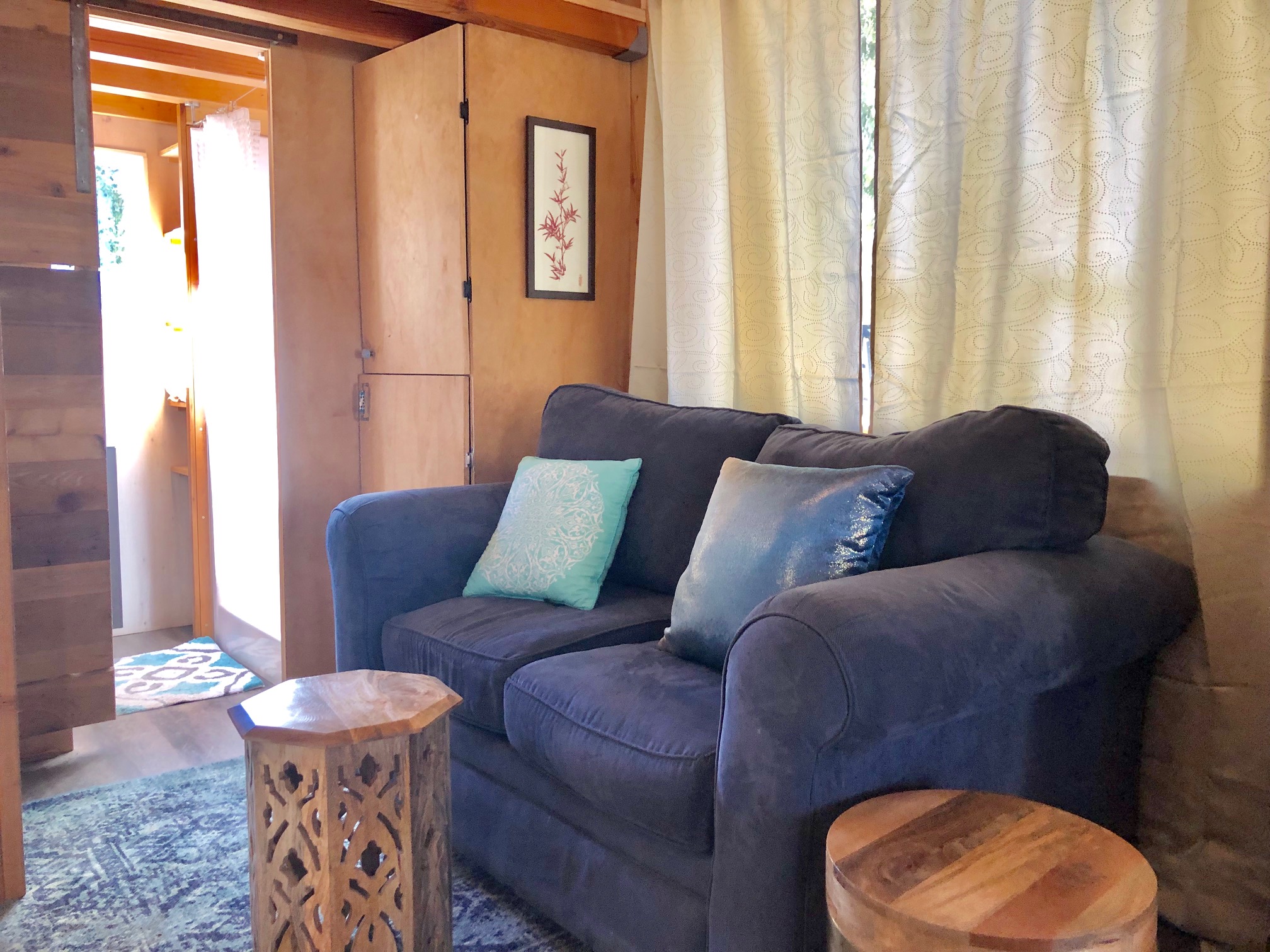 Crystal Zen has a beautifully-designed double loft, perfect for perfect for 2 single friends, a family of 4, or 2 couples.The large living room has a comfortable couch, ideal for snuggling or reading. Full kitchen includes gas stove, oven, refrigerator, and freezer. Dedicated outdoor patio with firepit lounge. There is a dining table that comfortably sits 4. Full bathroom with shower, sink, and toilet. Plenty of cabinet storage space and parking for up to 2 vehicles.